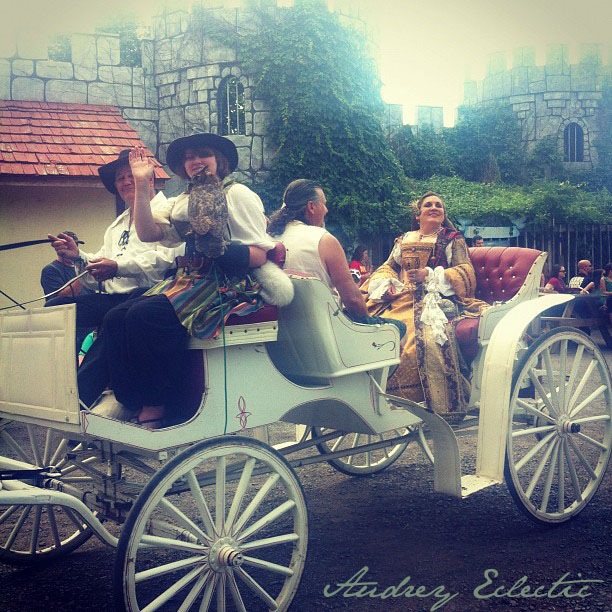 Have you ever been to a Renaissance fair? The one we attended in Muskogee, Oklahoma was large and rather impressive! They do all sorts of events throughout the year, and are holding the Renaissance Fair every weekend in May. You might even see the queen, pictured just above in her carriage!