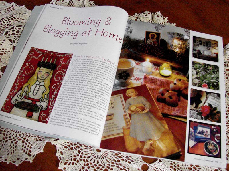 My article for this issue focuses on blogging, and to make the article a little different, I chose to focus on how I use my home as a backdrop and almost ‘second author’ for this blog. So much of what I make is designed to be in a home– a part of your world and every day decor. It’s important to me that my own home showcases my art in a way that others can see how it looks in a real setting. So the article is about that, as well as how any home can become a beautiful little world, with imperfections and all. I know it seems like everyone lives in an immaculate 100 year old farm house with perfect rooms and perfect yards, but you don’t have to have all that to make a beautiful home, or a beautiful blog. You and I both can bloom where we are! So that’s what I wrote about.