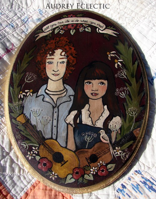 9. I adore both these pieces very much. That folk angel is one of the most beautiful I've seen you create. And the portrait is so sweet – I love the instruments and all that Queen Anne's Lace. 🙂