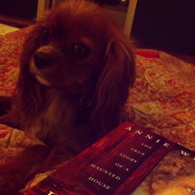 At the end of the day, Mr. Franklin and I cuddled up with a new ghost story that my brother got me for my birthday (that’s what comes of a lifetime of terrifying a younger sibling with ghostly tales, I guess!) and called it a night. Tomorrow– the 25th— will be Franklin’s first birthday! He’s getting to be a big ol’ boy! He’s finally starting to ‘unfurl’, getting his leg whispies and flagged tail like a real Cavalier!