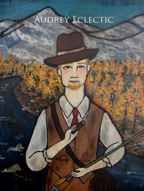 It’s the same gentleman as in THIS family portrait, but he wanted his own portrait depicting him in about the same era, but fly fishing in one of his favorite areas of Colorado. I added an antique fishing pole and basket, and he’s smoking a cigar– another favorite thing of the owner!