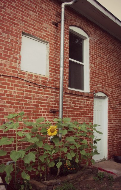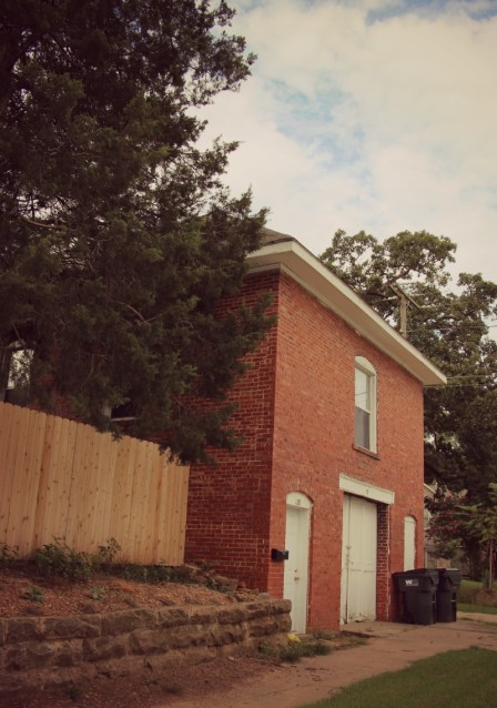 So did I tell you about this cool building we have in our backyard? And about my future schemes for it? Well, when we bought this house, we also got this big brick building in the back yard with a garage on bottom and an apartment up top. This is no tiny garage building either— each floor is 1300 sq. feet, the garage is really large and has several sorta creepy back storage rooms and then there is an apartment upstairs that is actually larger than the house we moved out of. We call it (rather poshly) the carriage house.