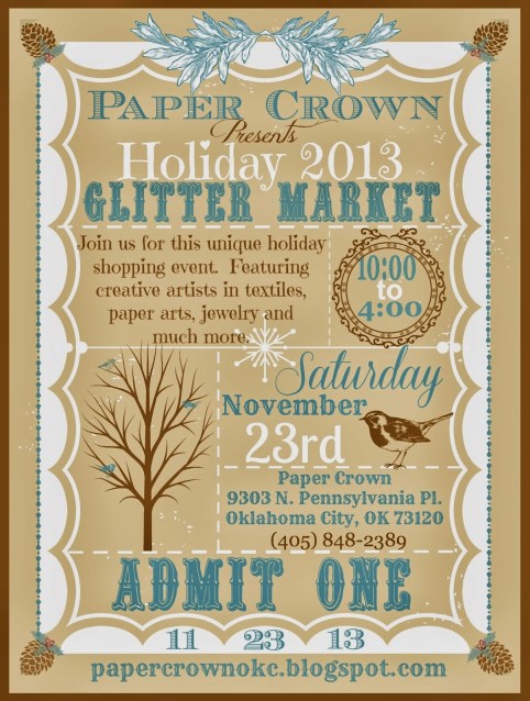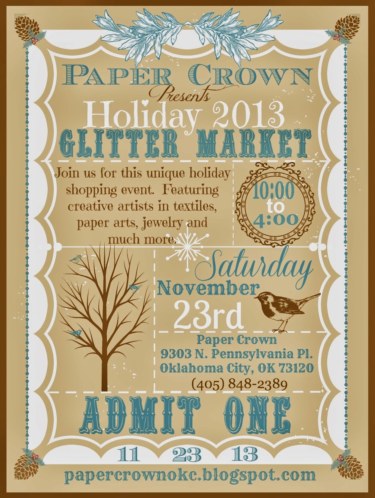 Just wanted to pop in really quick and let you know about some upcoming events for November! I have been invited to take part in a sweet little show in Oklahoma City called “Glitter Market” which is hosted by The Paper Crown. This is supposed to be a really neat event, and Im excited to take part!