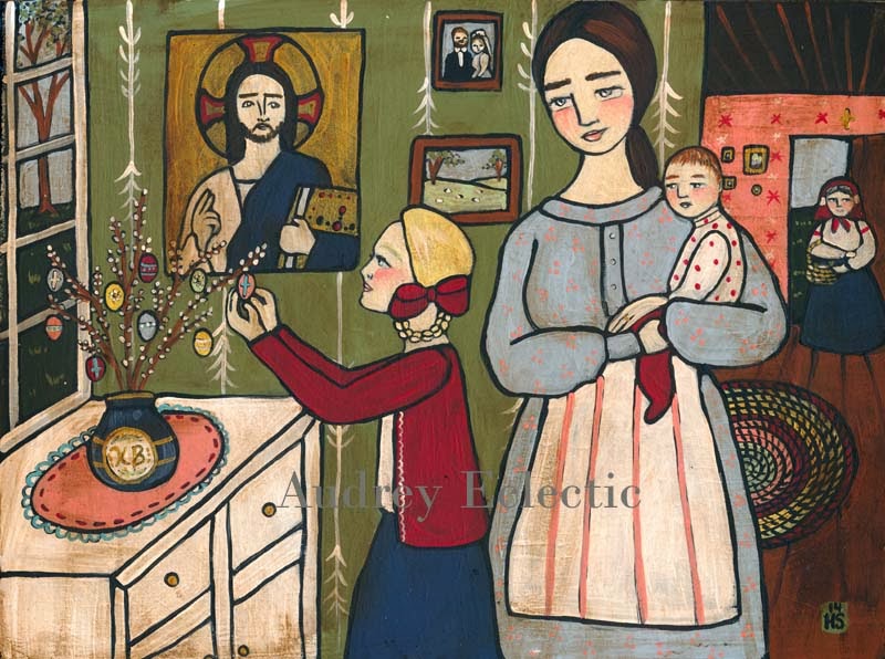 Of course I am well aware of the troubles happening in The Ukraine at this very moment, and to me that makes these paintings all the more poignant. I know there are many, many families there just entering into Lent, probably with very heavy hearts and lots of uncertainty. I hope that this year and this Easter (Pascha, to the many Orthodox Christians that live there) brings them a miracle of peace and hope. That is, ultimately, what Easter is all about.
