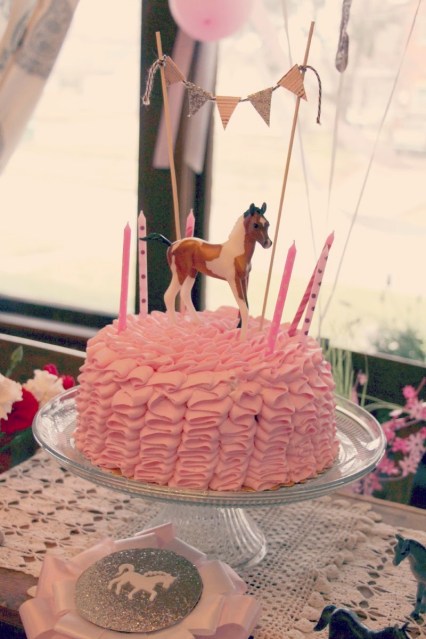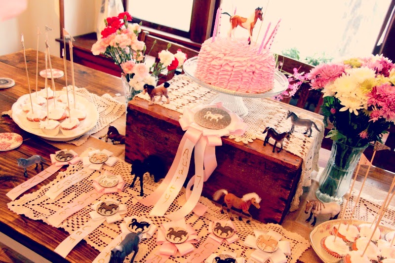 So this weekend Audrey had her 7th birthday party— seven! I can’t believe she’s such a big kid! To celebrate we combined two things that she absolutely loves; pink and ponies! I perused pinterest and got some great ideas, and then headed to the craft store for heaps of ribbon, scrap booking paper, and ofcourse– hot glue!