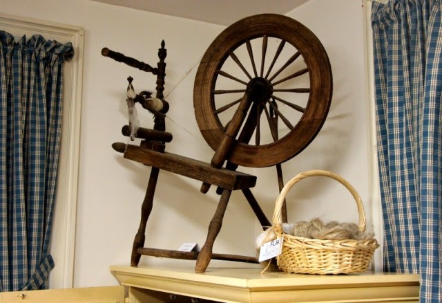 Last fall I was able to visit the Tasha Tudor Museum in Brattleboro, Vermont and took these photos of Tasha’s spinning and weaving equipment. It was fascinating to see these old pieces, antiques when even Tasha acquired them, and imagine all the hours she sat in quiet consentration spinning fibers into yarn or weaving threads into beautiful cloth.