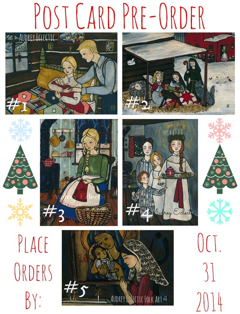 Hi friends!~ Well, we’ve got just a few days left for the big pre-order for Christmas post cards! You can place your order for any and all of the designs above in my etsy shop through Oct. 31. On Nov.1 I will be making my big order!