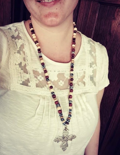 I’ve also started thinking about all the spring projects I want to do (aside from gardening, of course!) and sprucing up my wardrobe and creating special little accessories has my brain working over time. Yesterday I finally decided to find some beads to make a necklace especially for the coptic cross pendant I got around Christmas last year. I got some wooden beads and a small strand of blue and white ceramic beads and created this new piece for myself— i really like it! Blue and white is my absolute favorite color combination, and I love the simple naturalness of the wooden beads with them. They stand back and let the cross take center stage. Now I want to make more! (of course!)