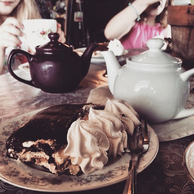 For her birthday, we went to a local tea room and had a fancy little girl tea party. Each girl got her own tea service of a tea cup and small tea pot filled with her favorite drink (there may have been a tea pot filled with Dr. Pepper) and a decadent desert. I chose the chocolate eclair cake and was not disappointed! I am usually a very motivated dessert eater, and even I couldn’t finish it! So, so good. The Burnett Mansion is a beautiful historic home downtown and everything I’ve had to eat there has been amazing. Plus, when we were there they had live piano music and Audrey got serenaded with her own “happy birthday” song! I think these little girls had a grand ol’ time!