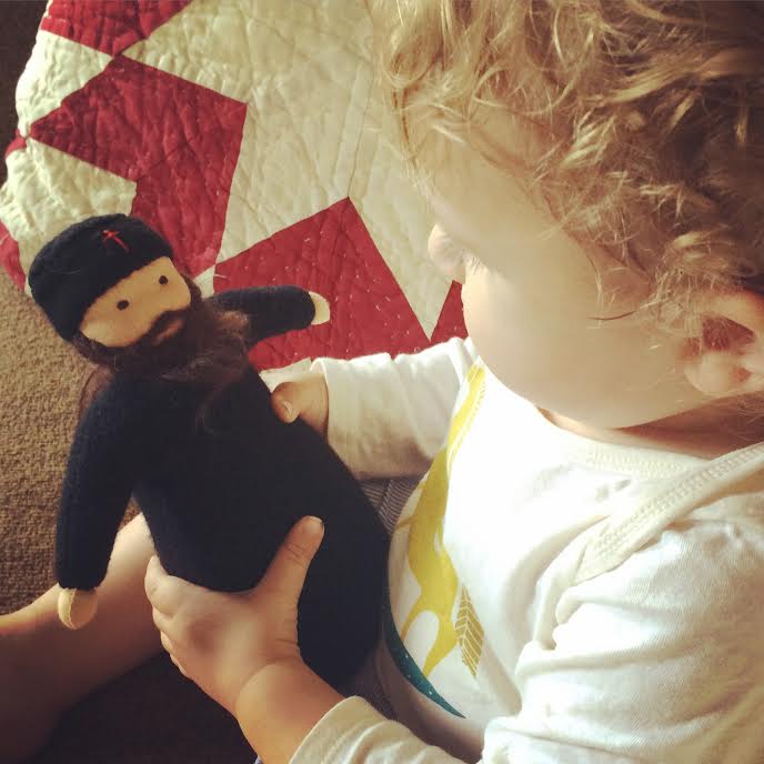My friends Thom and Christine run The Workshop, and I gave them the cutest doll (if I do say so myself!) in honor of their adoption plans! They are Christian Orthodox and when I saw Rebecca’s handmade Orthodox dolls in her shop Poppy and Pearl I knew….they HAD to have one! I snapped a photo of Robbie looking him over before I wrapped the monk up to give to the Crowes. Such a fun little doll, I love his beard! And I’m hoping the Crowes have many blessings as they embark on their adoption adventure and can’t wait to see their family evolve!~