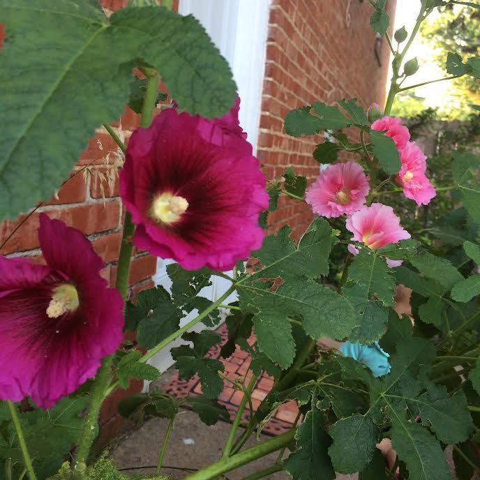 In other news around the house and studio…..the hollyhocks are blooming! One of my very very favorite flowers. They are just so old fashioned and sweet. And since their biannuals (just leaves the first year, then flowers the second) it’s quite a wait to see what you get! I had no idea what colors would pop up. So far we’ve got pinks in several shades, I love them!