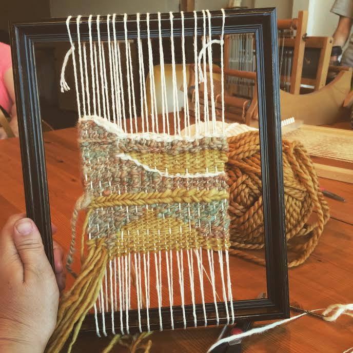 Summer is in full swing over here, and my studiomate/goof friend/partner in fibery crime Tasha and I are adjusting to having our big kids out of school and maintaining our studio schedules. Yesterday we took a field trip out to Shepherd’s Cross and got a ton of good wooly goodies to feed our knitting/weaving/spinning habits! I’ve been learning to weave this week under Tasha’s guidance. My first weaving is coming along pretty good I think, especially since I like that ‘rustic’ look. Perfection is boring to me. I always say “I want this to look like its 100 years old and was found in an old trunk in an attic after a house fire.” Yep, that’s my design mantra, ha!