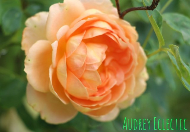 I am also very proud of my Lady of Shalott rose from Steve Austin roses. It was a Mother’s Day indulgence, and then the rose suffered from thrips all last year. Thrips are terrible little bugs that get inside flower buds and suck out the nutrients and severely deform the flowers. This year I fed and nurtured all my roses with Rose food and pest control, and they’re all doing a lot better and pretty Lady of Shalott is bug free! (How undignified, that this beautiful lady should have a bug problem, right?!?)