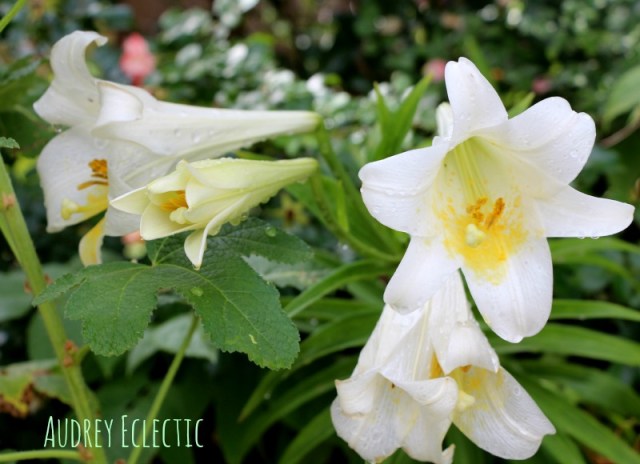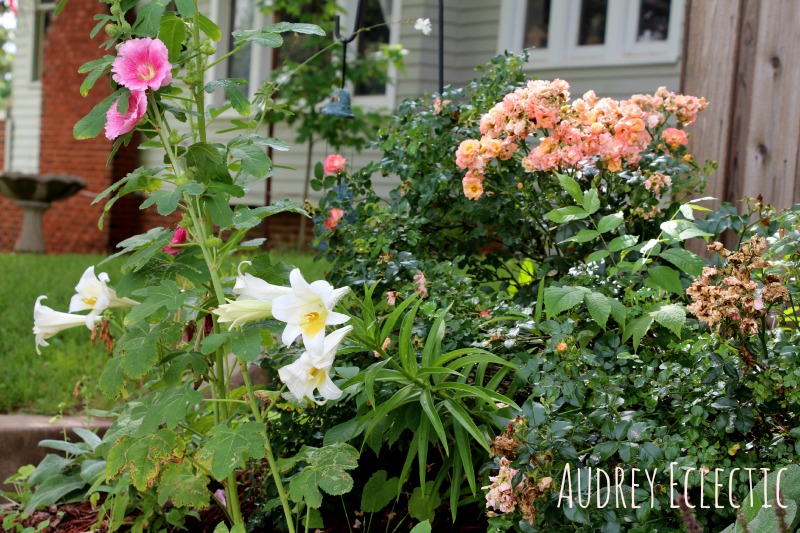 Oh! And I cant forget the Easter Lilies! Lilies I got from church after the Easter season had passed and all the altar flowers were up for grabs! I got a couple of lilies and put them in the garden— this year I snagged an Orchid from the altar flowers 😉 it’s a bit ridiculous perhaps how much I enjoy that ‘end of the Easter season’ traditions. But I can’t resist flowers!