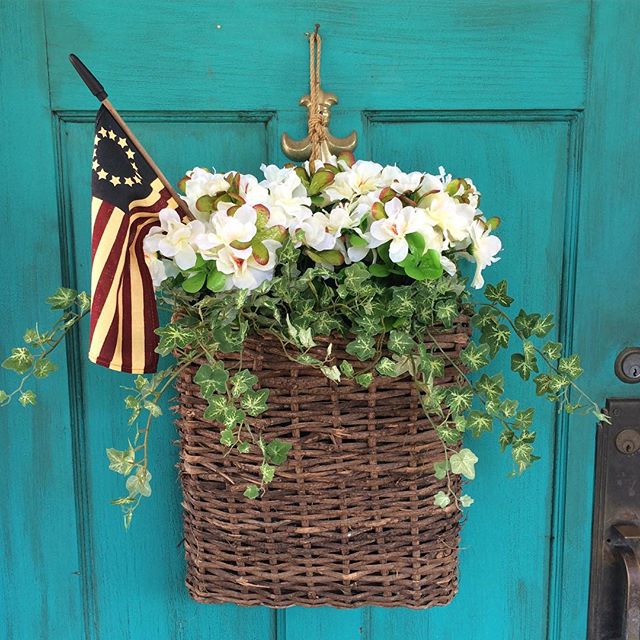 I also hung up the little woven basket I got in New England as well as the little Betsy Ross flag—when I saw that basket in a little roadside plant stand near Hoosick, NY I knew; it had to be mine. Every season….something new in the basket. Challenge: Accepted.
