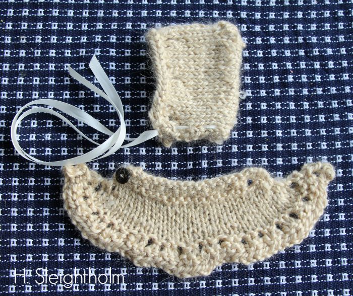 For this “Tasha Tuesday” I thought I’d combine two of Tasha’s great loves (two things I also love!) knitting and little doll things. I am starting to see the advantage in combining knitting and dolls— doll clothing knits up a lot faster, and a doll will never rip a hat off and run squealing from the room. Yep, dolls always appreciate what you make them.