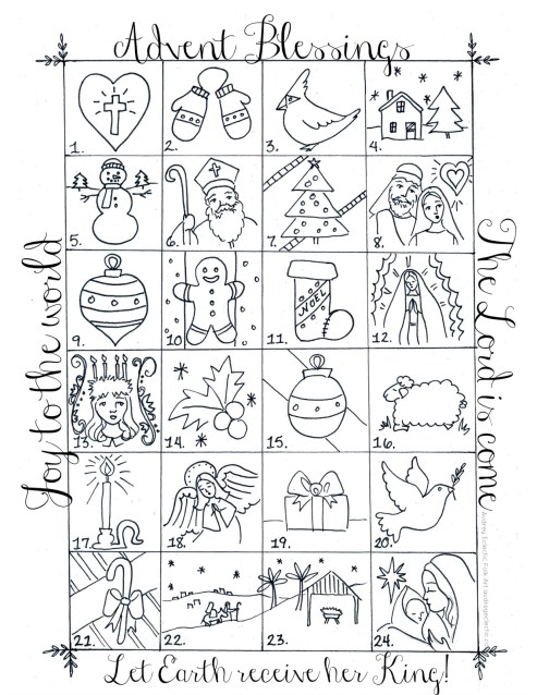I created this fun little calander to use for the month of December. I added drawings of fun winter things like birds and ornaments and trees, and drawings to mark special days such as St. Nicholas Day, Immaculate Conception of the Virgin Mary, Our Lady of Guadalupe, St. Lucia Day and Christmas Eve.