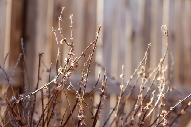 The garden in January is sleeping. The spring’s bulbs have been planting and last year’s flowers are brown and brittle, gone to seed. A few things keep a green tinge; the roses still have leaves, but they’re darker.