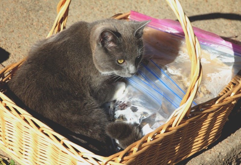 We had the seeds in a basket, and you know how cats are…Teddy had to get right up in the middle of it! Cats always seem to know just what to get into….as do two year old boys!