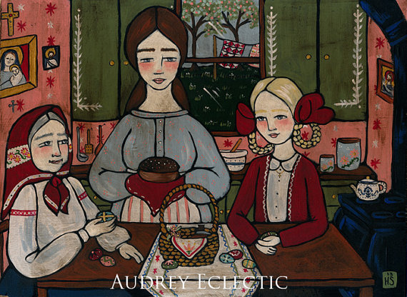 Hi there, friends! Can you believe that Palm Sunday is this coming Sunday? How is Easter coming up so fast?!?! Spring is here and I’m getting the shop ready for Easter/Pascha celebrations. I just replenished the stock of several spring/Easter designs— including “Preparing the Easter Basket”, “The Easter Egg Tree” and “Madonna of the Blossoms!”