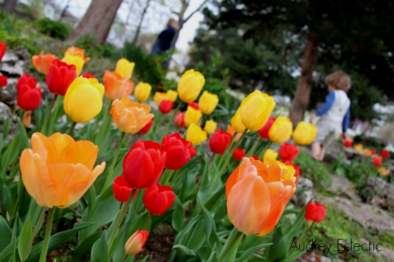 The kids and I went out for a little ramble at Woodward Park in Tulsa recently, and took some spring photos before the rain moved in. Im so glad we did—- who knows what those beautiful tulips look like now after a pummeling thunderstorm!