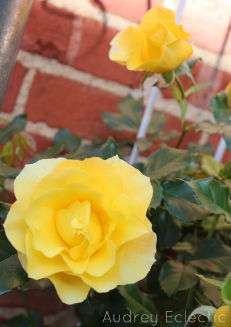 This garden is wild and rambling, and so is the yard. We’ve let the lawn go wild, which I think is good because its natural and chemical free, and the most interesting things are popping up in it, like tiny wild strawberries! Our three rabbits also provide plenty of free fertilizer, and its good stuff— did you know rabbit pellets can be put directly in the garden from the hutch without any rest time? Evidently its gentle stuff and my roses sure seem to love it.