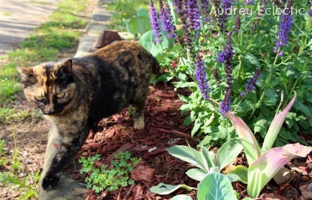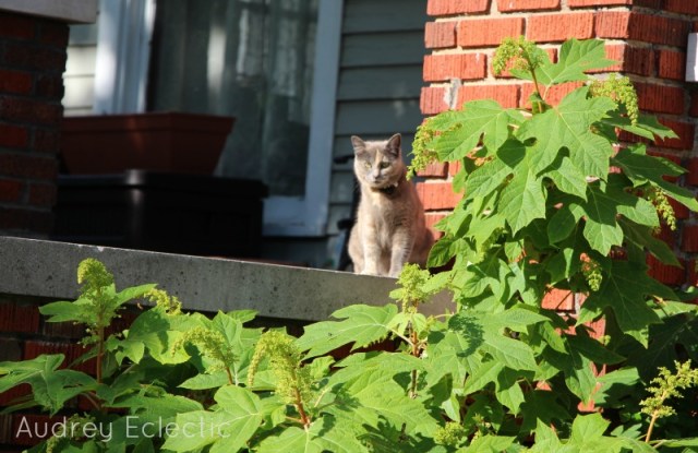 The kitties have been enjoying their newly lush green world as well, and its not uncommon to find a little pile of fur curled up and sleeping under hydrangea leaves or taking a sip out of a bird bath. And any time we plant something, there is an entire feline committee on stand-by to inspect and sometimes, ah-hem, inaugurate a freshly dug hole if you’re not careful 😉