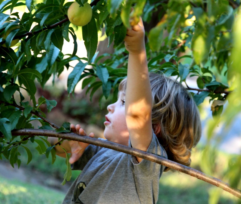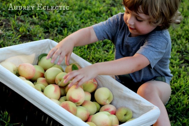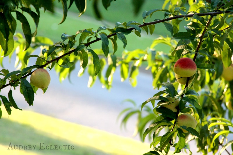 Several months ago I wrote a post about our Easter Egg Tree we made using branches from our little peach tree in the yard. Well, those blooming branches that stayed on the tree made quite a yield this year— and we’ve got pounds of beautiful blushy fruit to show for it!