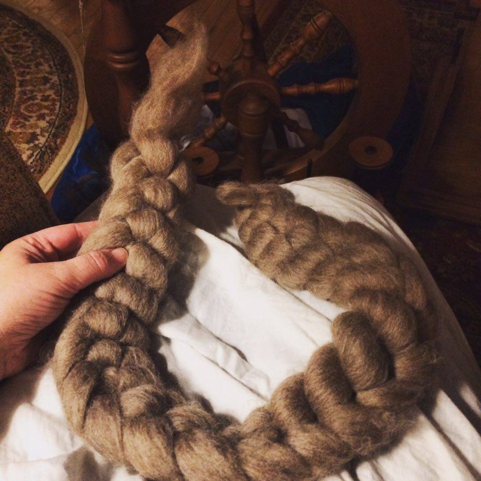 At Christmas I cuddled up with a braid of roving my friend Winnie brought me all the way from England! It is…so luscious. That’s the word for it. Its so soft and fluffy and dreamy, the color the perfect moody gray/brown, like a winter day on the moor (I’m guessing here, ha, I’ve never seen a moor….but heather grows there, so it must be amazing, right?)