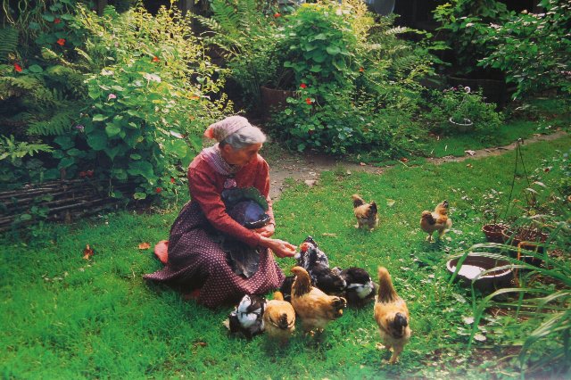 From reading Tasha Tudor’s books and seeing photos and documentaries on her life, I could tell that Tasha had an affinity for chickens. Whether she was giving the barnyard rooster a haircut for her latest marionette, or drawing baby chicks for Easter scenes, it was obvious that Tasha had a love for these little feathered creatures!