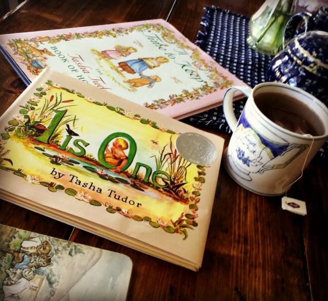 Of course, at this time of year, chicks and chickens are a sign of the coming Easter season, and its the perfect time to bring out the spring themed Tasha Tudor books. Robbie and I have been reading through “1 is one” for counting, and Tasha’s book “A Time To Keep” is always a great book to cuddle up with, as it goes through all the seasons.