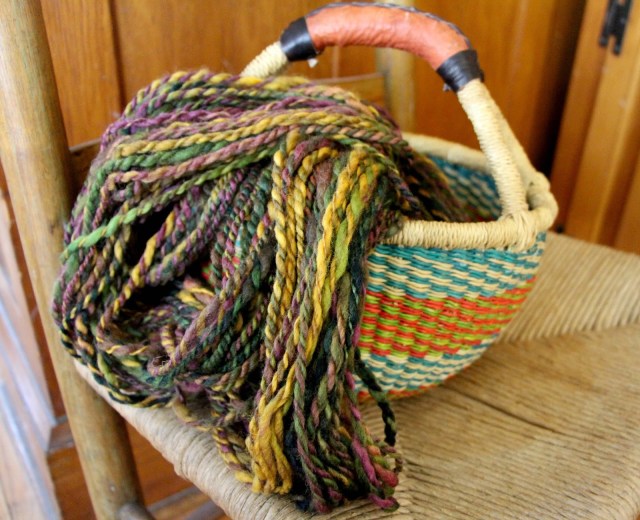 On the fiber front, this is the latest yarn off my wheel— a fun color combo that reminds me of Mardi Gras! I got the roving at Fleece ‘N Flax in Eureka Springs, AR. when I was there for the Eureka Fiber In The Ozarks retreat. I think it would make a great fluffy cowl. And I have plenty of time between now and next Mardi Gras to knit it up, dontcha think? 😉