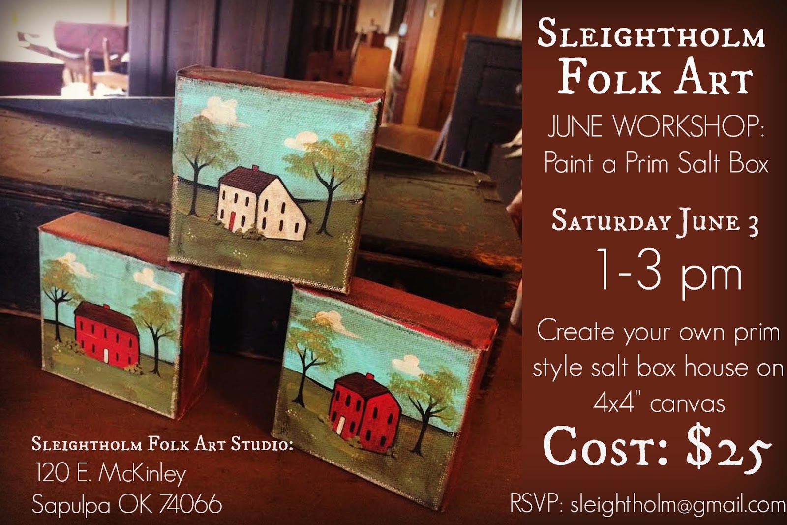 I am also excited to announce I’m offering my FIRST workshop out in the studio this summer— create your OWN 4×4″ folk art square house painting out in my 100 year old carriage house. We’ll paint and laugh and carry on 😉 it should be a lot of fun! Email me if you’re interested Im keeping the class small for starting, and so that we all have lots of room to work and get the attention needed. Email me if you’re interested!