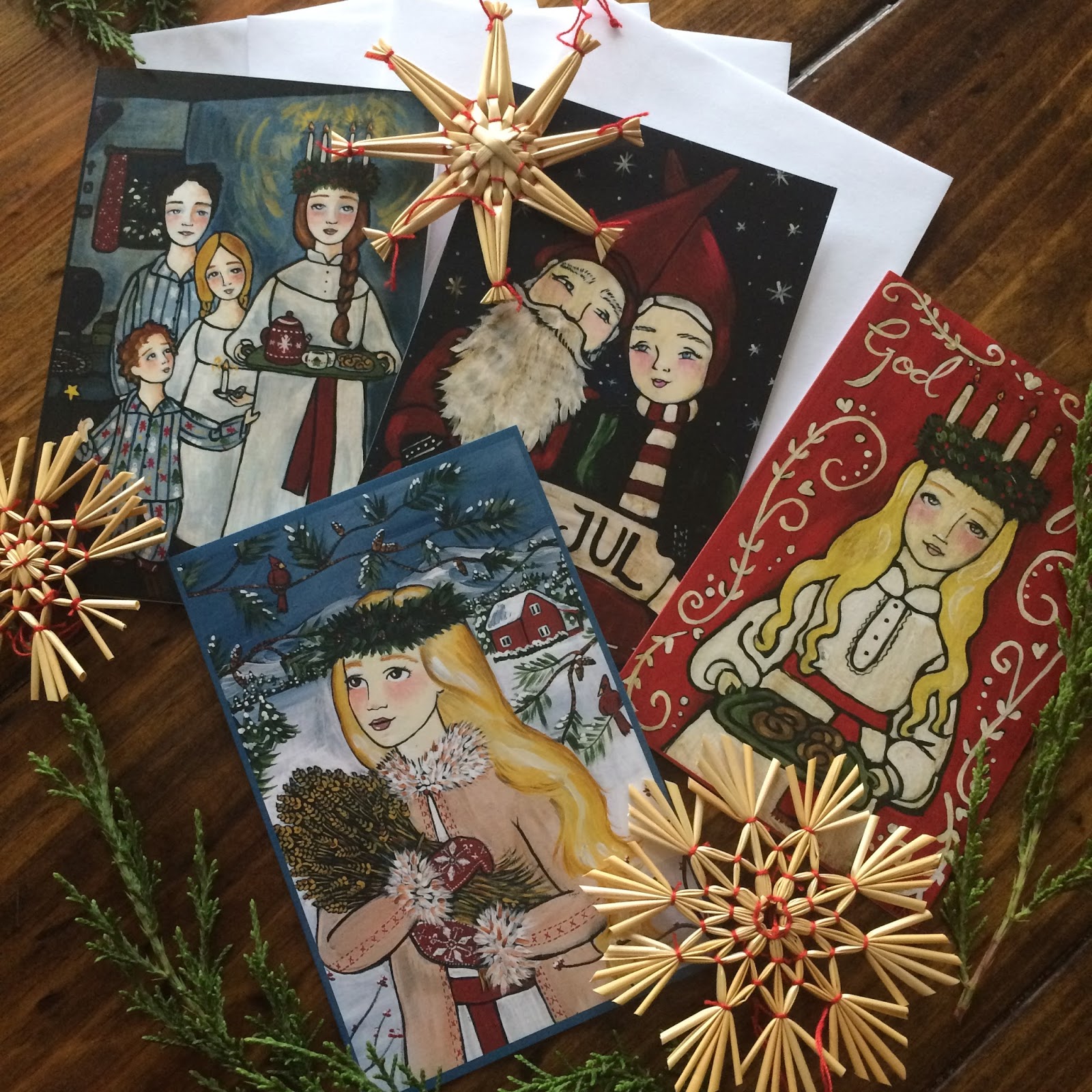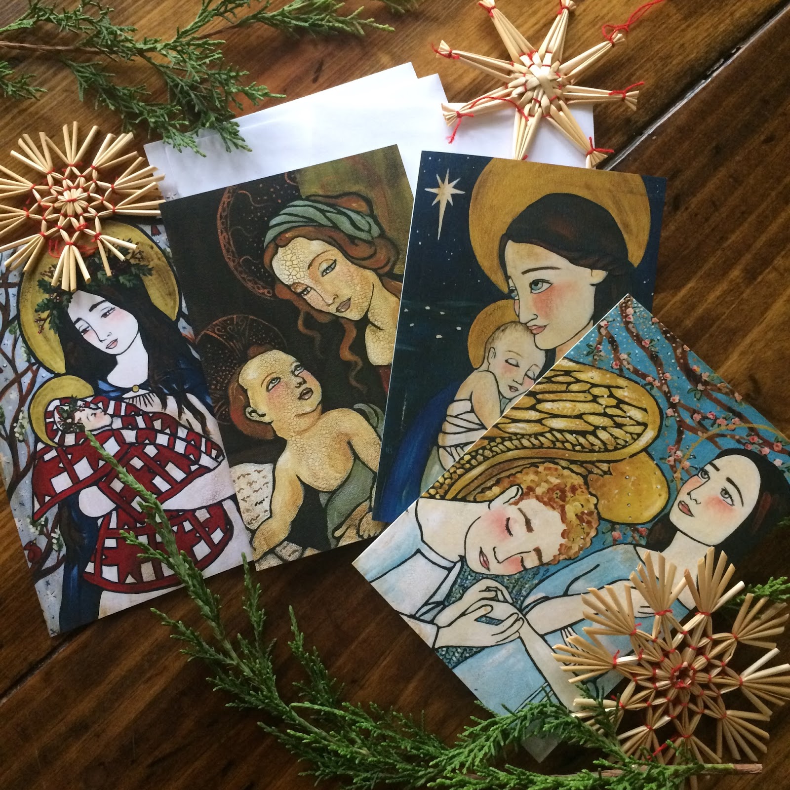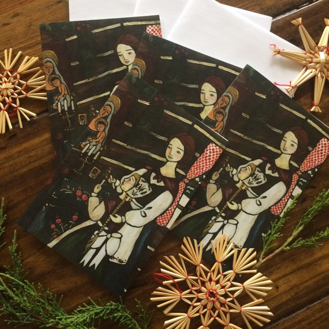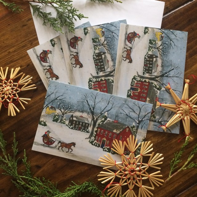 I am thrilled to announce that all my Christmas cards are HERE and freshly listed in my etsy shop! This year I am offering several sets from you to choose from– some mixed, others with one image. The sets are packaged in groups of four, and all come with matching envelopes.