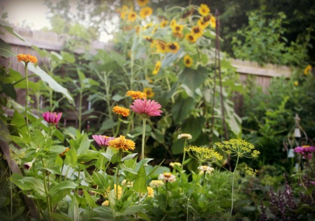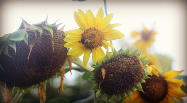 The sunflowers are going crazy too, and I love seeing their sunny little (and big) faces reaching for the sky. There is something so wild and magnificent about sunflowers, bobbing in the breeze and following the light of the sun. I’ll have to save some of these seeds and feed the birdies the rest. I must always have the sunflowers, since they’re my mama’s favorite flowers— and the bees too, of course!