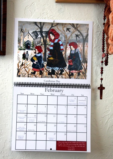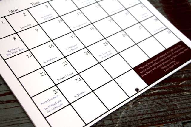 My idea for this calendar was to make it more ecumenical than most calendars out there— there are feast days and holy days marked for Roman Rite, Anglican and Orthodox liturgical years. There are also major Jewish feast days noted.