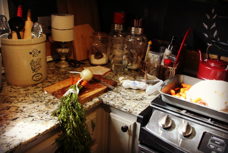 This is a shot of our done-up bird going into the oven. And I’m a little bashful feeling to tell you— that when the bird came out two hours later, looking like heaven, it was carved up in no time and I had forgotten to take a photo of the finished product! I know….what am I going to do with myself? Just trust me, it was wonderful….and tasted divine! A wonderful dinner to start on a Saturday or Sunday afternoon and then have ready for a weekend feast with family or any guests! I’ve also found that I can stretch a roast chicken into two meals, plus make stock, so one bird goes a long way!