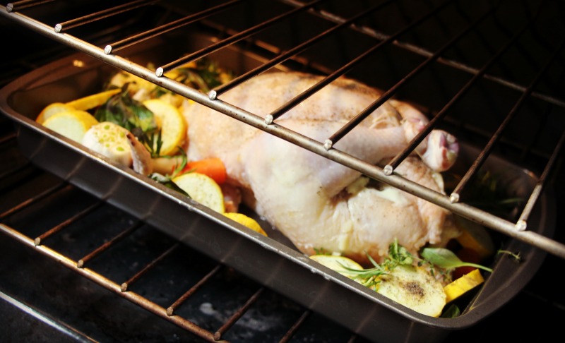 And after the beautiful bird has been carved up and all the good meat picked off (I usually pick it clean and then use the leftover bits to use in a pasta dish the next night!) you can use the carcass and any left over veggies or vegetable cuttings to make homemade chicken stock!
