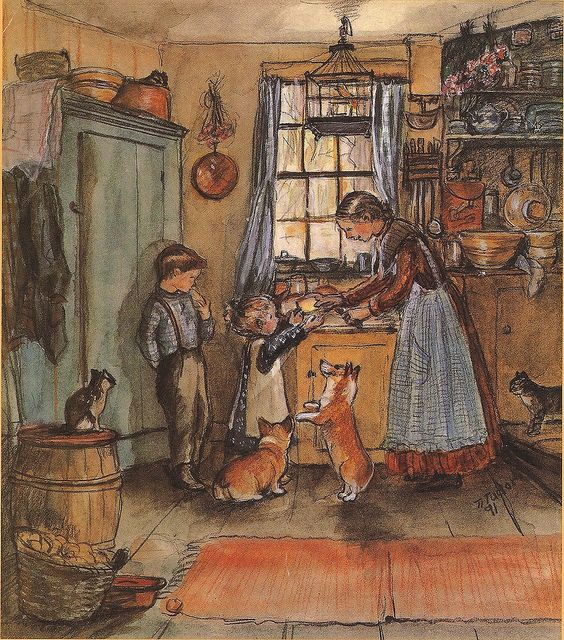 Cozy kitchen illustration by Tasha Tudor! Life goals!