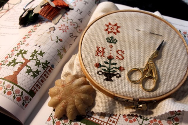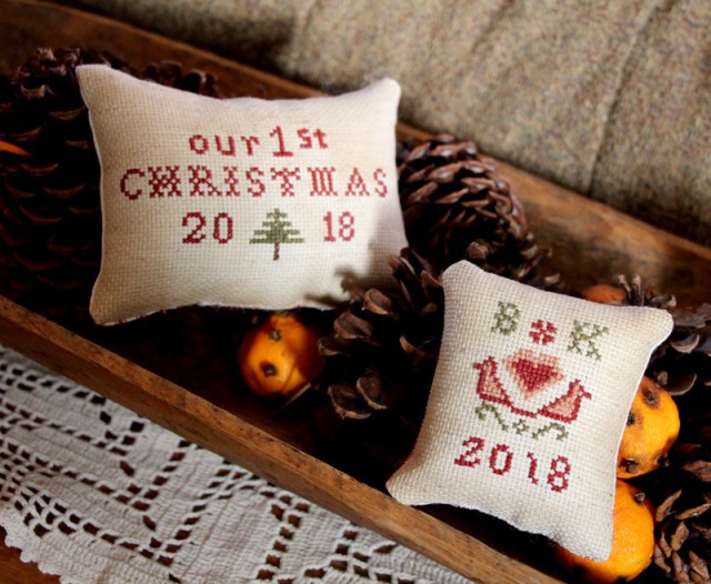 This Christmas I made an ornament for my brother and his new wife and also a little love bird ornament for my parents since they celebrated 40 years of marriage in 2018. I’ve also been playing around with other simple motifs I’ve found in several sampler books I’ve gathered, and have been enjoying myself….