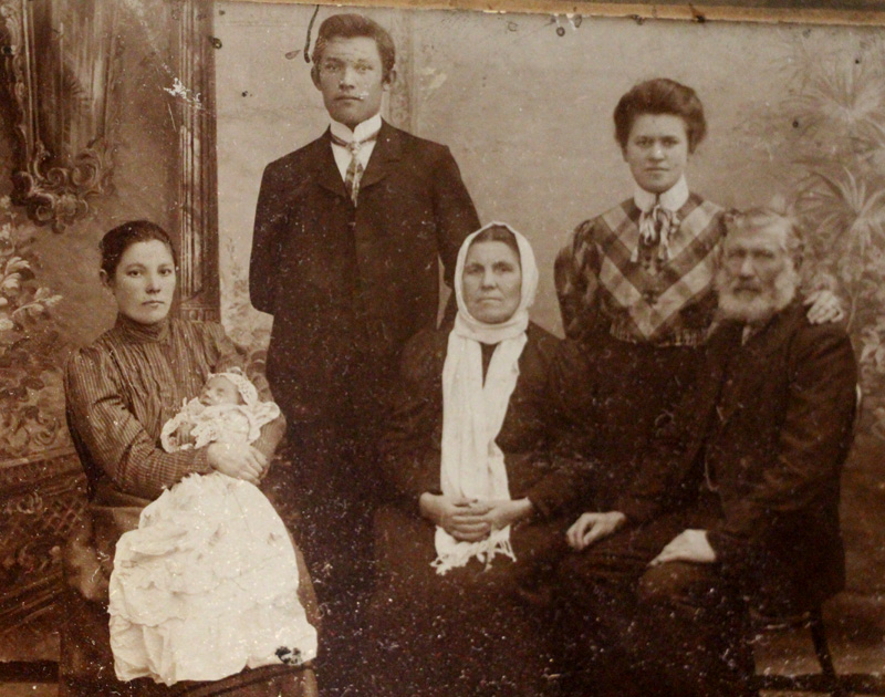 I am so intrigued by their faces….and wonder endlessly about what their story may be. The fact that I found this photo in Missouri leads me to believe that it came all the way from Russia with an immigrant. Who were the immigrants, I wonder? Did the entire family come? Or perhaps just the couple with the baby? Or even the young woman beside her father? Was this a last photo before the big trip, to remember loved ones? Oh the story that is hidden here….if only there were names to perhaps look into who they were, because I always want to know the story…instead I will just hope that their adventures and life were happy and blessed. And that sweet baby…..where might life have taken him or her? Hopefully to wonderful places…..and who knows, perhaps their descendants live nearby?