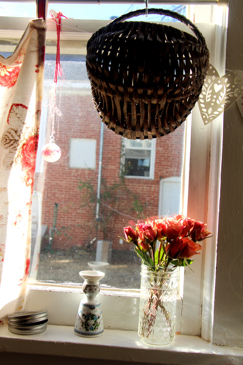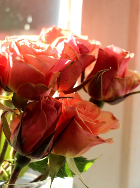 Now doesn’t that make you feel all quiet and contemplative, on a dark winter’s day? I know it does for me 😉 But also…..these dark winter days have me enjoying little glimpses of grown and green, and I couldnt resist bringing home a little bouquet of roses the other day, to sit in my kitchen window…