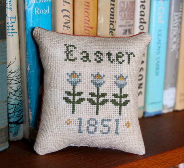 After a bit of interest, I’ve decided that I will offer some PDF patterns of some of my favorite designs I come up with, and the first one I’ve gotten in my shop is the little “Easter 1851” pillow. You can purchase it now for instant download and make your own pillow pin keep, or use the design in any other stitching project you’d like to make.