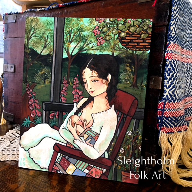 My nursing days are now long over, with my baby now a big kid PreK’er, but this painting is a bit of a nod back to that not so far back past, when I had my own tiny baby to nurse. And it is a special memory I know a lot of mamas have, and also something to look forward to for those expectant mamas. It is without a doubt, not an easy thing and sometimes it isn’t possible. But when it can happen, and a rthymn is found, its such a tender, wonderful thing.