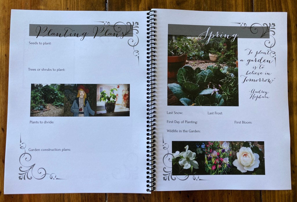 I’ve had the idea for this garden journal for a while, but it took a bit of forced-to-stay-home-in-a-pandemic to get me to sit down and really focus and get it done. And here it is! The garden journal is available now in my Etsy shop— and you can purchased a spiral bound printed copy as shown, OR the PDF file to print and use at home.