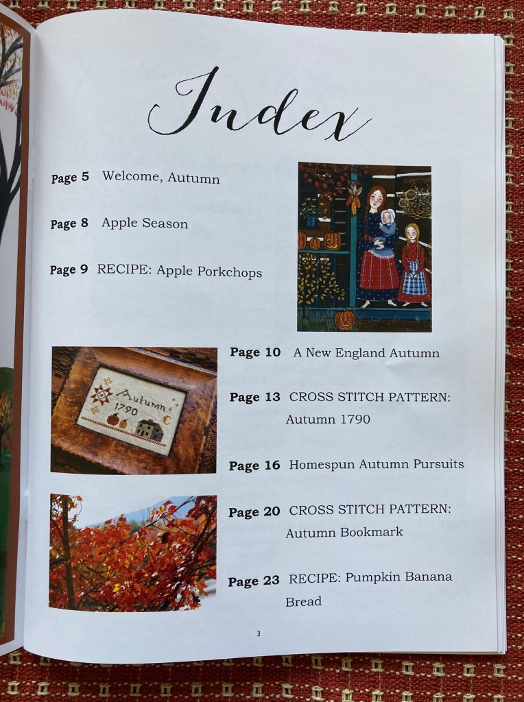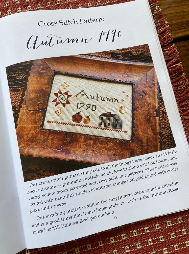 I’ve been working on this booklet for the last several months, and it includes many of my favorite things about autumn. Inside you’ll find original cross stitch patterns, a knitting pattern, recipes and some of my autumn writing. The title is inspired by the classic poem by James Whitcomb Riley and is full of homespun autumn pursuits.