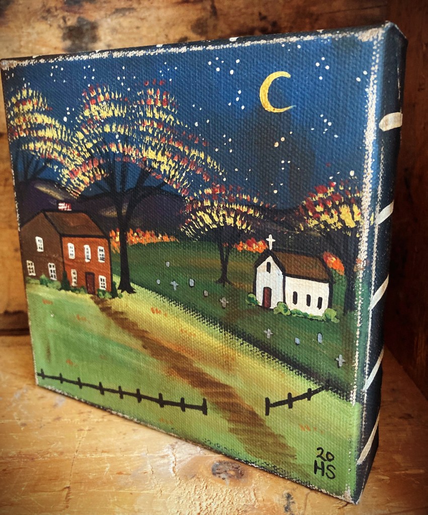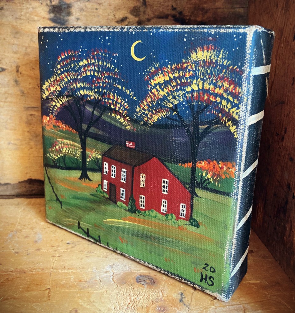 I also have a couple of original folk art houses available in my etsy shop, if you’d like a bit of folk art decor for the season: