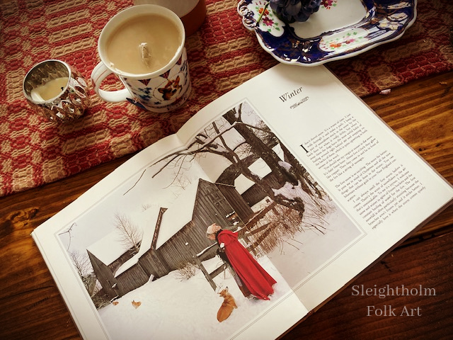 This snowy weather can’t help but remind me of Tasha Tudor, and her days of ‘hibernation’, when she’d spend long and snowy New England winters sequestered in her home, creating artwork. This sort of weather always brings her to mind, as I envision her sitting at the little end of her table, painting….corgis under foot, a fire in the fireplace and a cup of tea nearby. Those of us who admire Tasha always marvel at how much she was able to accomplish, but I imagine that it helped a great deal that she was so often isolated at home, and most definitely didn’t have the constant distraction of social media breaking her concentration.