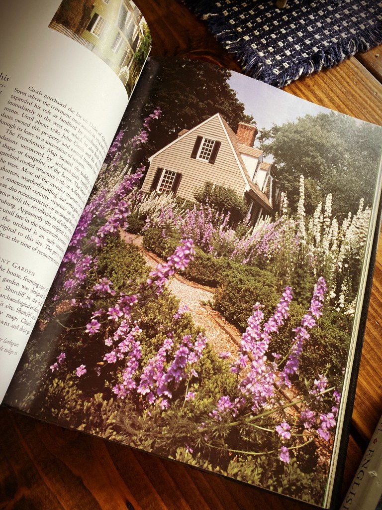 - “The Gardens of Colonial Williamsburg.” I love this (very big and beautiful!) book as it shows how to make an old fashioned garden with spectacular color and impact. I love seeing the gardens around the old buildings, and without a doubt spring seems to be Williamsburg’s most amazing season. Williamsburg is probably as close as we get in the US to an old fashioned English gardens and I hope one day I can visit and see them for myself! The homes shown in this book were also an inspiration in choosing the classic white paint for our house, and I love how it turned out.