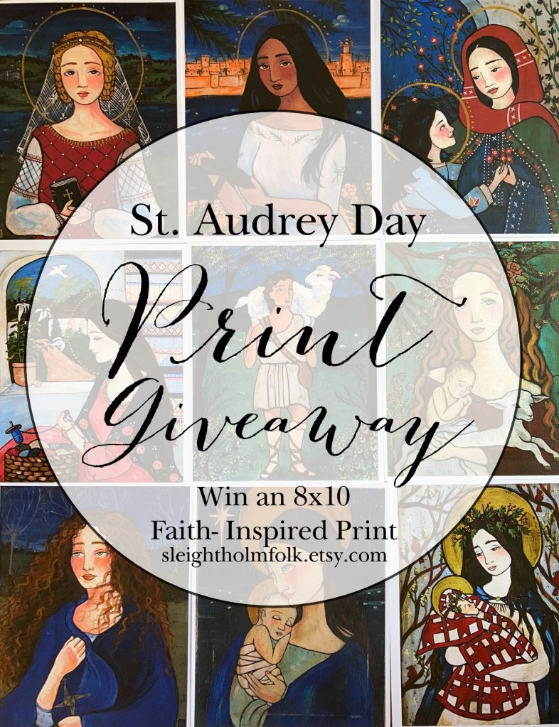 Hi friends! Just wanted to stop in and let you know that I’m hosting a giveaway on my new instagram account, St. Audrey’s Garden! Today is the feast of St. Audrey and so I’m celebrating 🙂 To enter to win you just need to follow the instagram account and tag a friend (or a few of them!) who you think might also like to win a print!